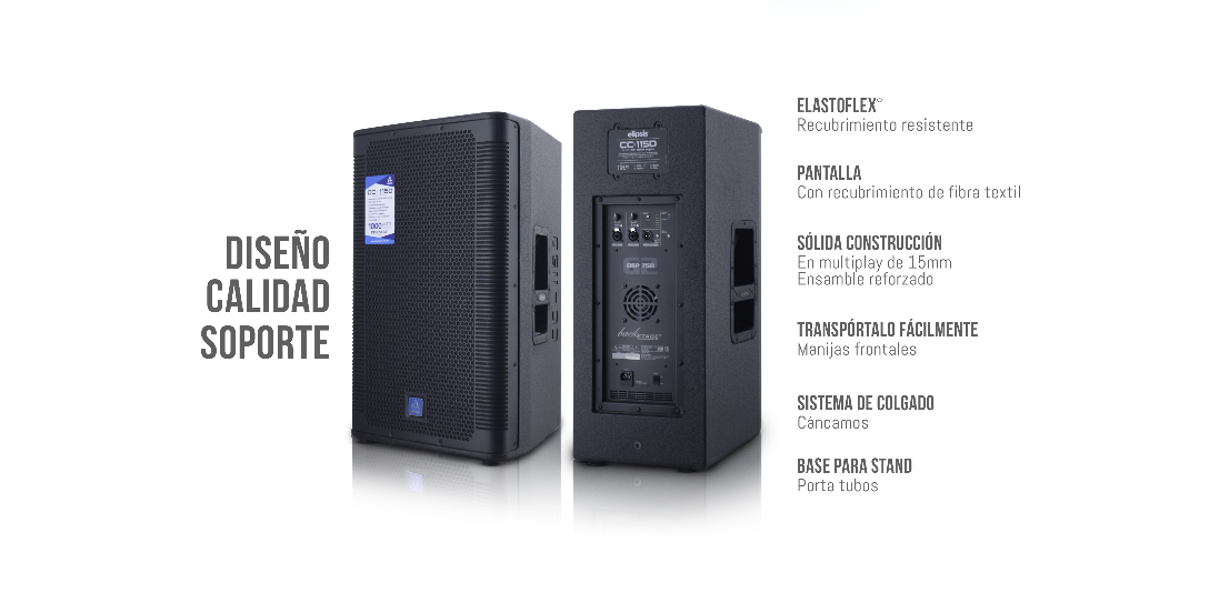 El sistema CC-115D incorpora un nuevo Bi-amplificador con arquitectura clase D, fuente conmutada y procesador digital con 6 presets listos para utilizarse según la aplicación. Los componentes utilizados tanto en altavoz como en driver, son de la casa inglesa Celestion, que garantiza un sonido excepcional. Combinando el diseño, su sólida construcción y fabricado con Multiplay lo hace sumamente resistente, aunado a la cubierta de Elastoflex que garantiza durabilidad, además de incorporar cáncamos para su fácilidad al colgar. | ||
