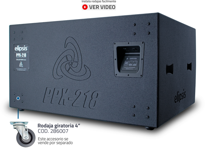 Componentes | Graves: Celestion, PowerProX18, 8 Ω, 1,200 Wrms, conexión Neutrik® Bocina izquierda 1+ / 1-, Bocina derecha 2+ / 2- | |